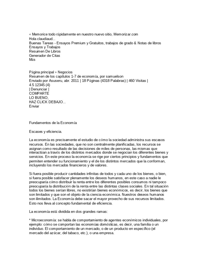 Resumen Samuelsons text was first published in 1948 and it immediately became the authority for the principles of economics courses. Resumen de todas las unidades elaborado con el libro de Samuelson Economia con aplicaciones a latinoamerica y Analisis economico del Derecho del prof. RESUMEN ECONOMA SAMUELSON - GUESTRIN para aprobar Economia de Abogaca UNC en.